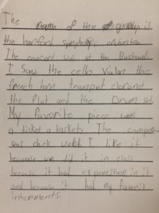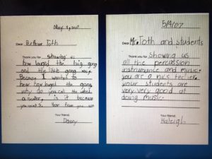 After attending symphony concerts, or having guest artists come in, students are always asked to write Thank You notes.