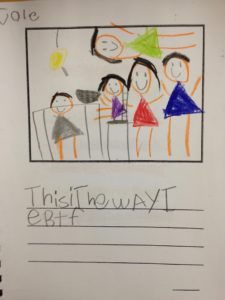 Follow-the-Leader songs that invite endless creative verses make great classroom books. Just as they create and lead in the Music room, they should create, write and illustrate in their classroom. Here We Go ‘Round the Mulberry Bush, Bow Belinda, and Do Do Pity My Case are some of our favorites. If we play it in the Music classroom, they have already orally rehearsed and are ready to write and illustrate. Sometimes we record the song to go along with the book, and sometimes we don’t. That way, sometimes they (and families) can sing along with the recording and sometimes they can sing a cappella, creating their own family choir.