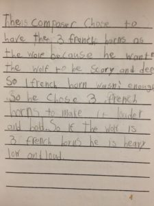 Carnival of the Animals, The Nutcracker, and Peter and the Wolf are rich with descriptive possibilities. Younger students should draw each character and write about how the character moves to match the music. Older students may discuss how the character’s movement and attributes influenced the composer’s choice of instrumentation and tempo. Students create a sheet for each character so at the end of the unit, each student has their own beautiful book of drawings and writing.. What a lovely gift for parents to share.