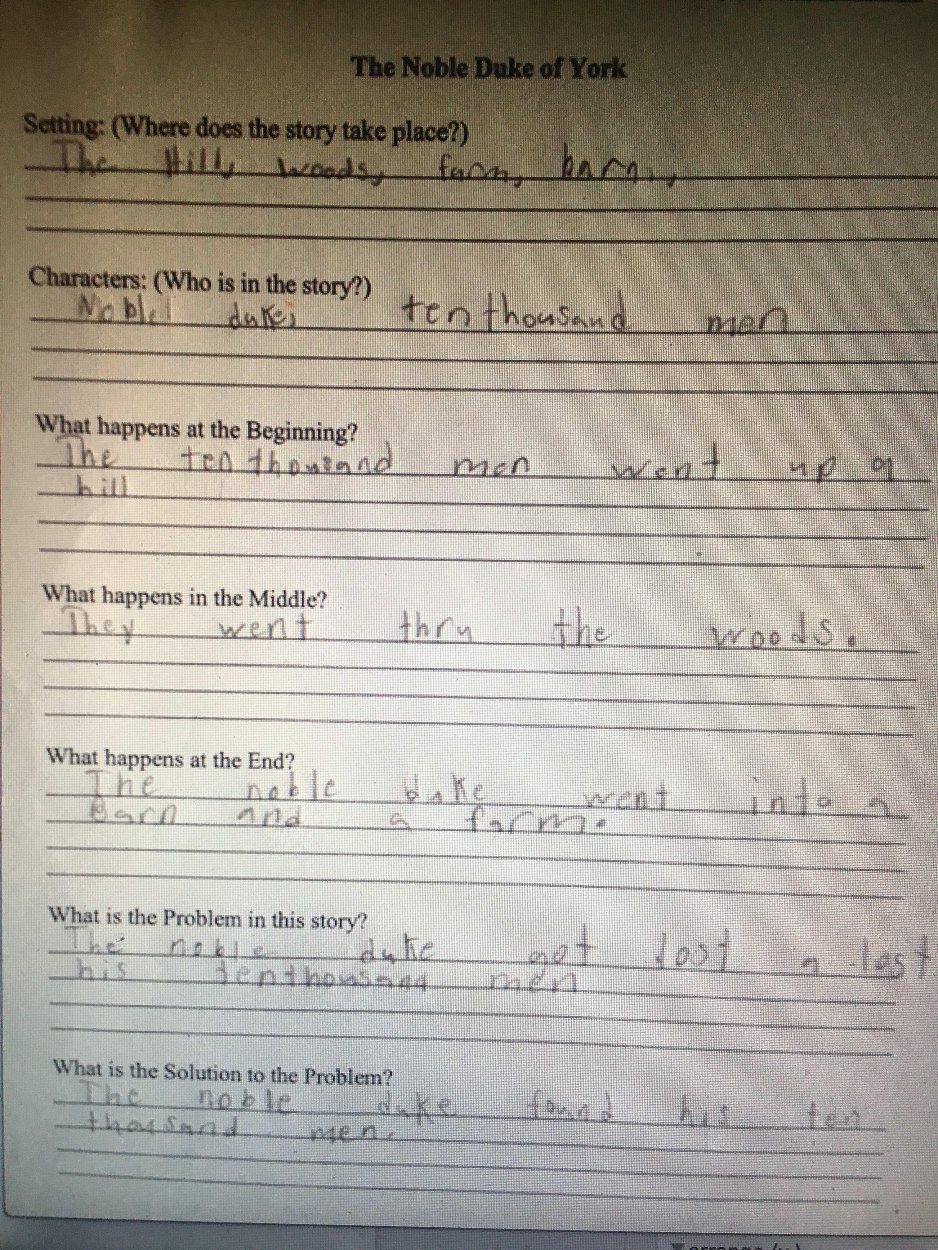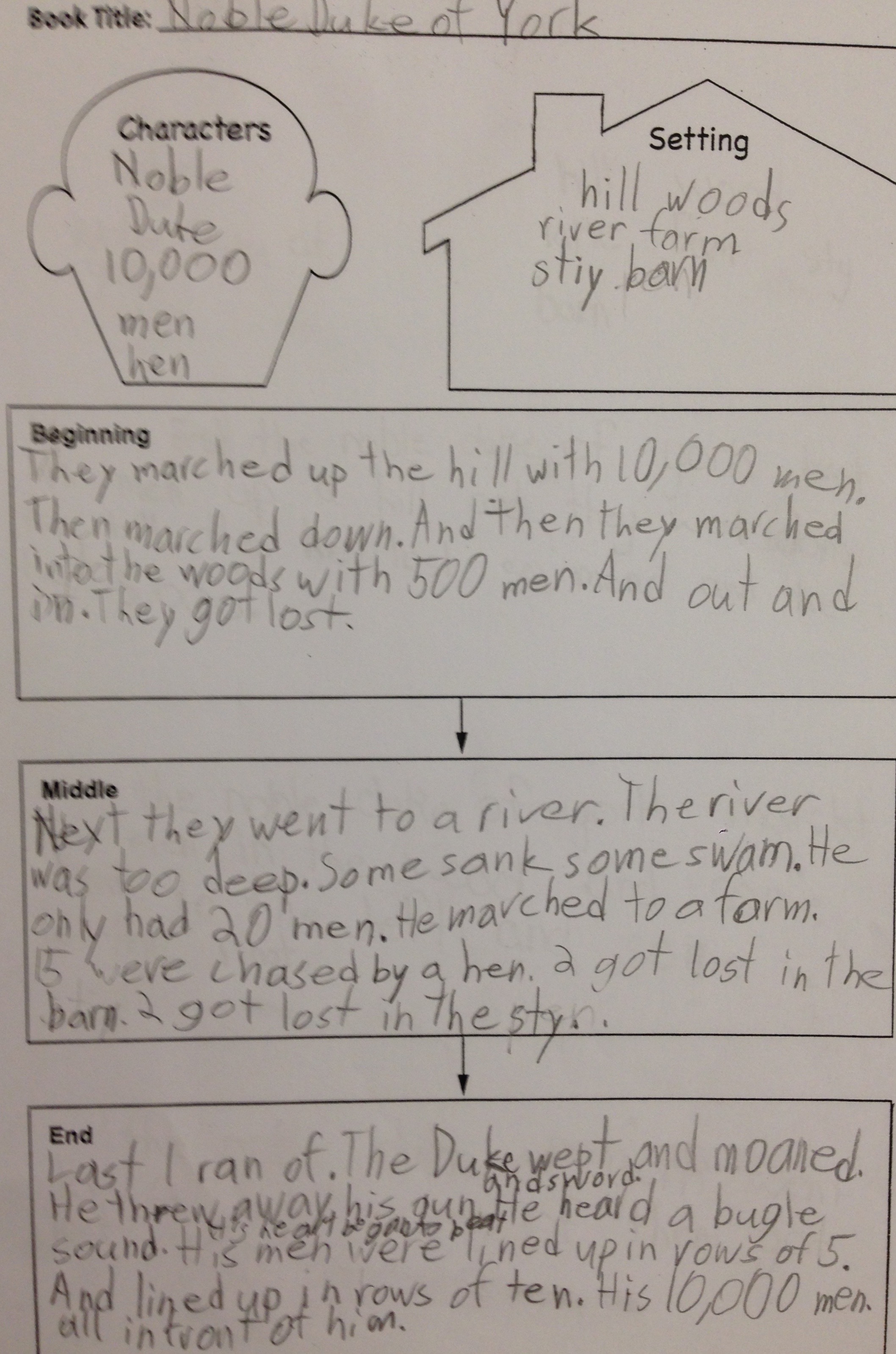 What happened first? Next? Then? Last? My first-grade colleagues use this as authentic assessment.