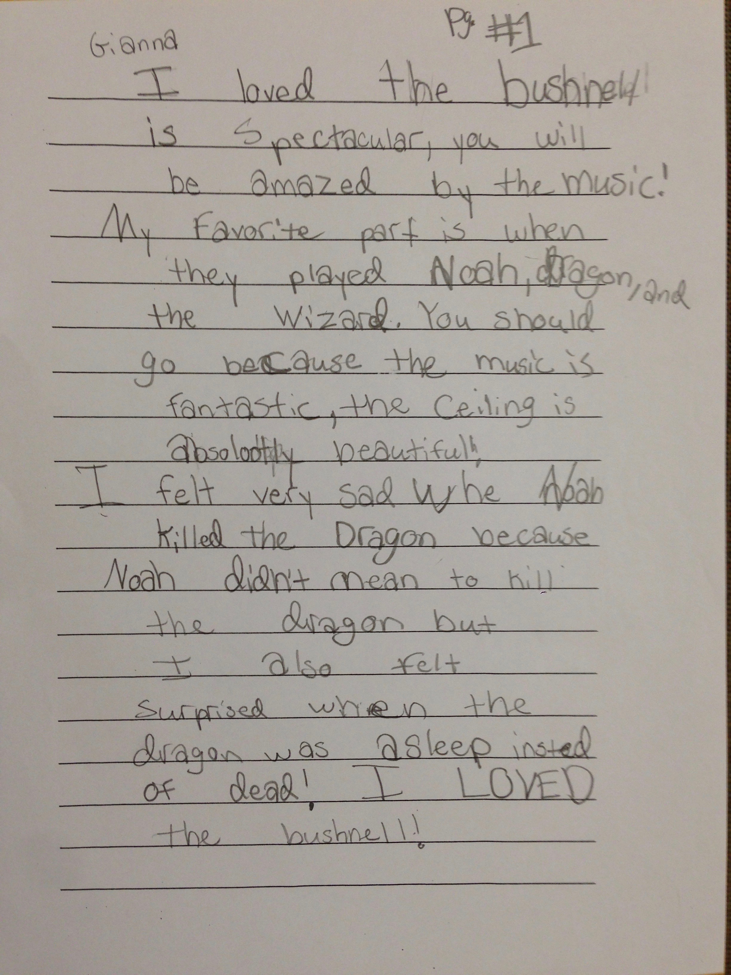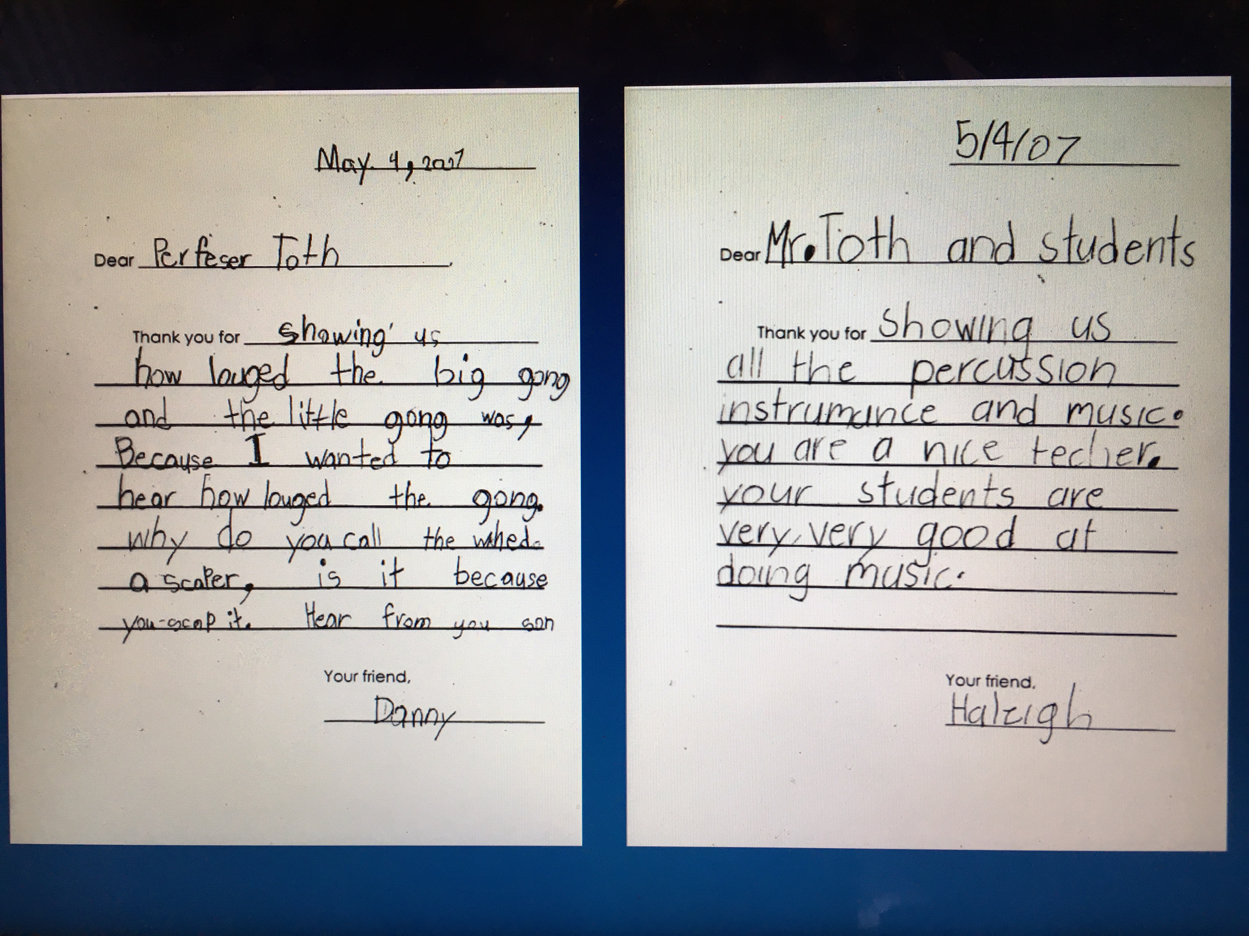After attending symphony concerts, or having guest artists come in, students are always asked to write Thank You notes.