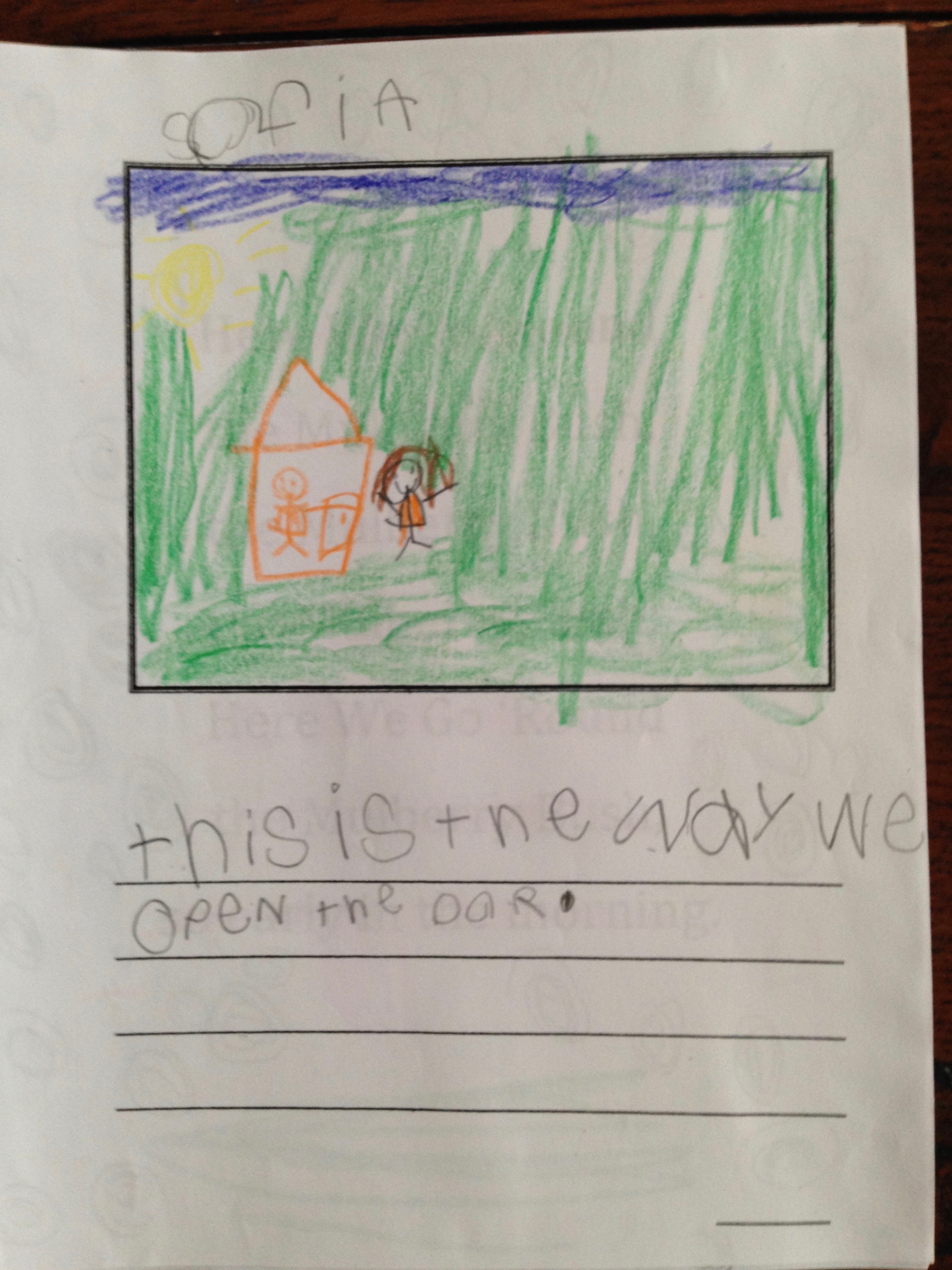 Follow-the-Leader songs that invite endless creative verses make great classroom books. Just as they create and lead in the Music room, they should create, write and illustrate in their classroom. Here We Go ‘Round the Mulberry Bush, Bow Belinda, and Do Do Pity My Case are some of our favorites. If we play it in the Music classroom, they have already orally rehearsed and are ready to write and illustrate. Sometimes we record the song to go along with the book, and sometimes we don’t. That way, sometimes they (and families) can sing along with the recording and sometimes they can sing a cappella, creating their own family choir.