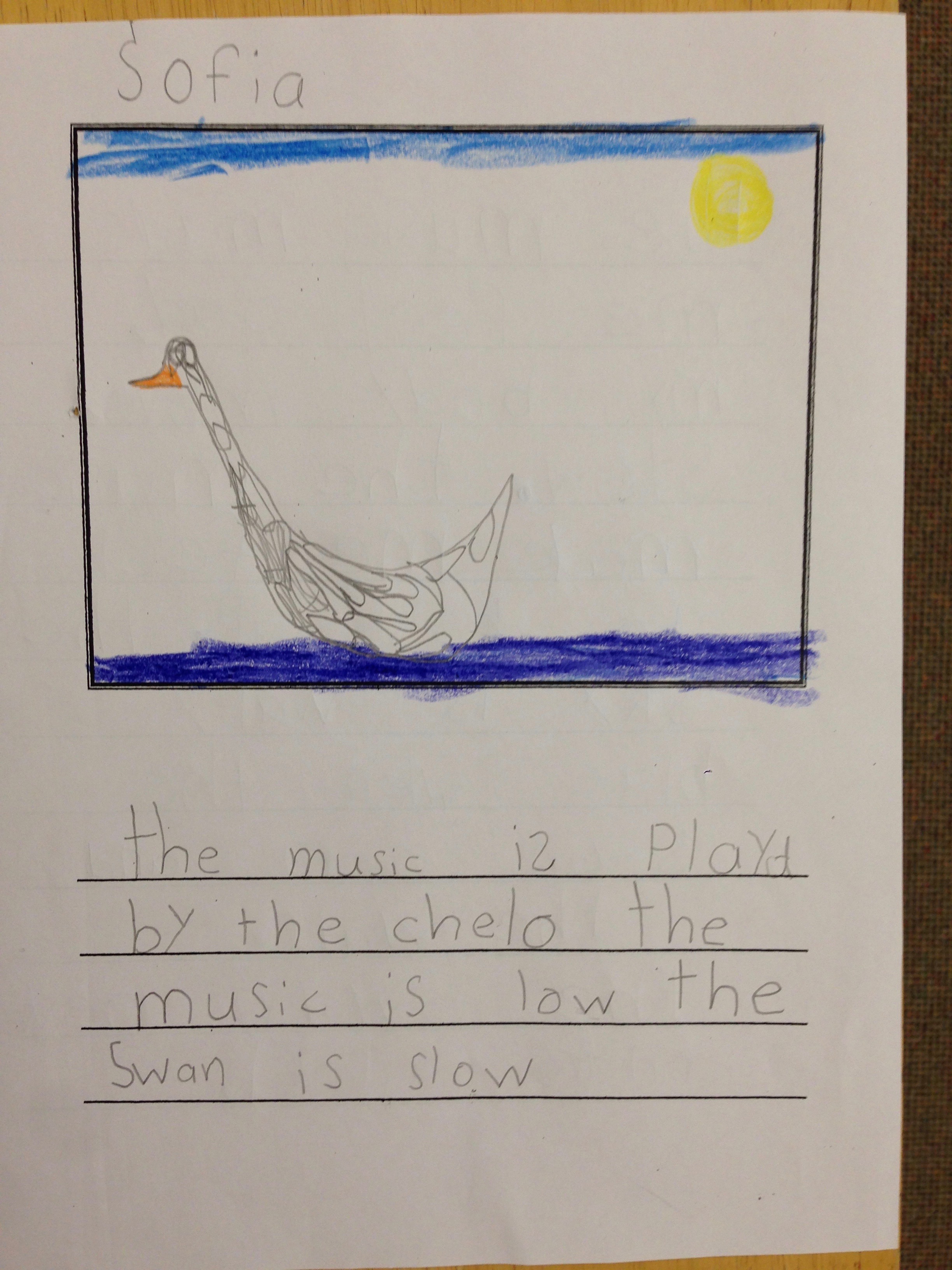 Carnival of the Animals, The Nutcracker, and Peter and the Wolf are rich with descriptive possibilities. Younger students should draw each character and write about how the character moves to match the music. Older students may discuss how the character’s movement and attributes influenced the composer’s choice of instrumentation and tempo. Students create a sheet for each character so at the end of the unit, each student has their own beautiful book of drawings and writing.. What a lovely gift for parents to share.