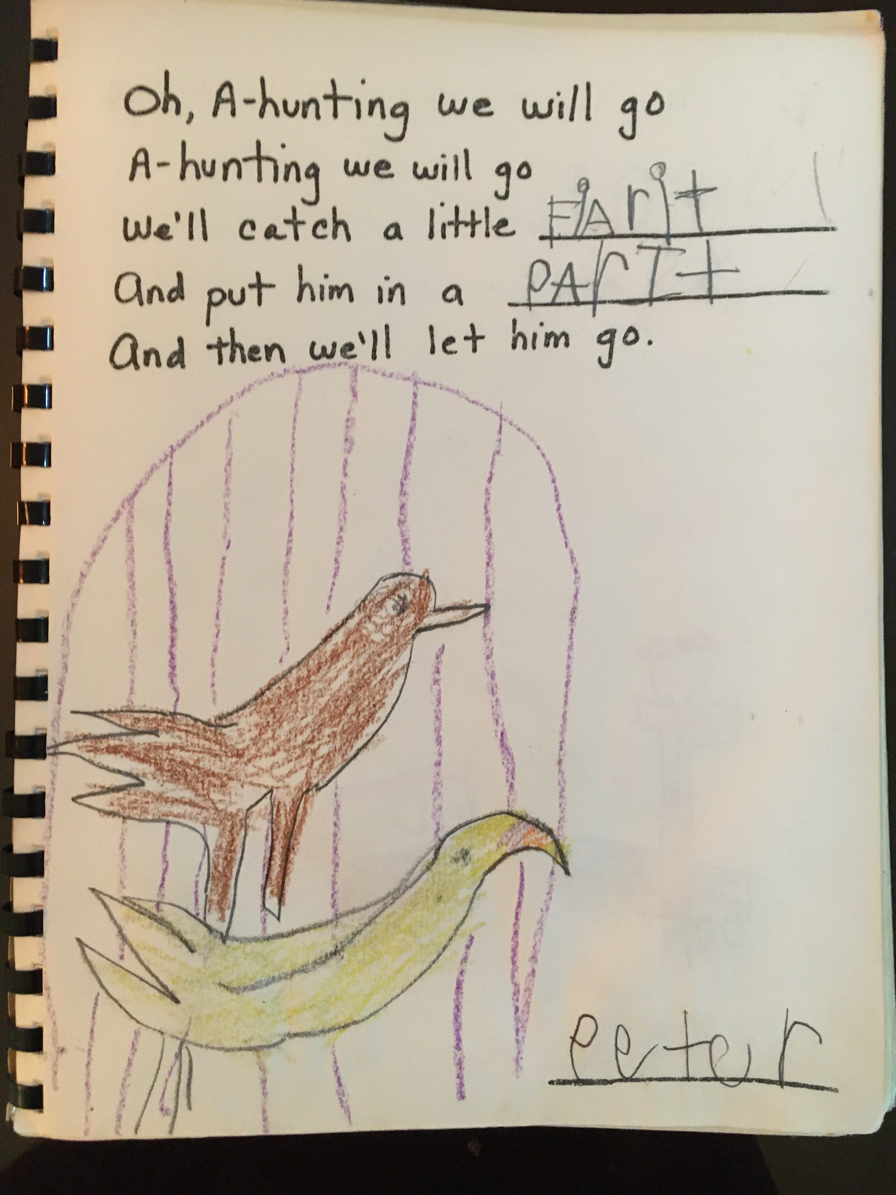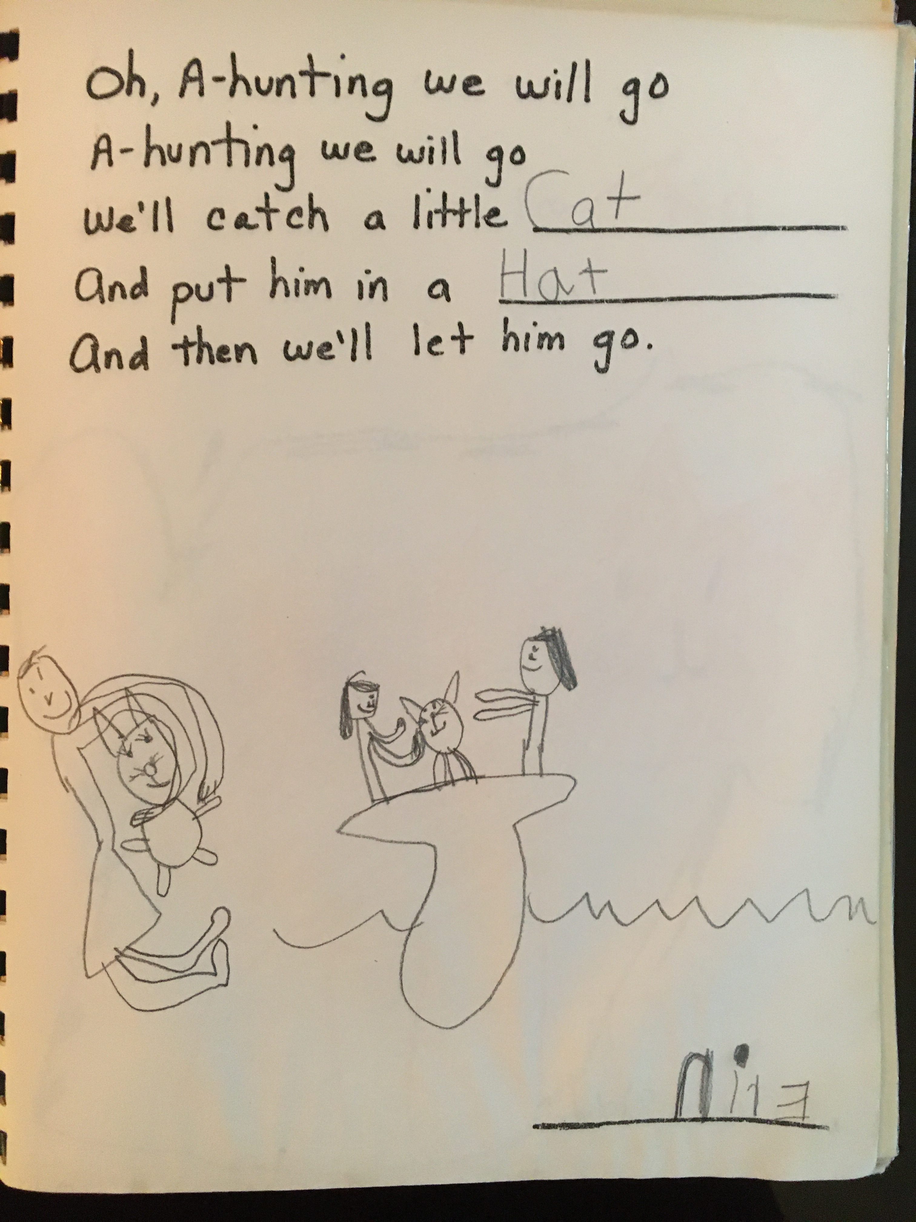 We enjoy Oh, A Hunting We Will Go so much that we create our own rhyming books. Then we record the class singing their version and it becomes part of the Classroom Library.