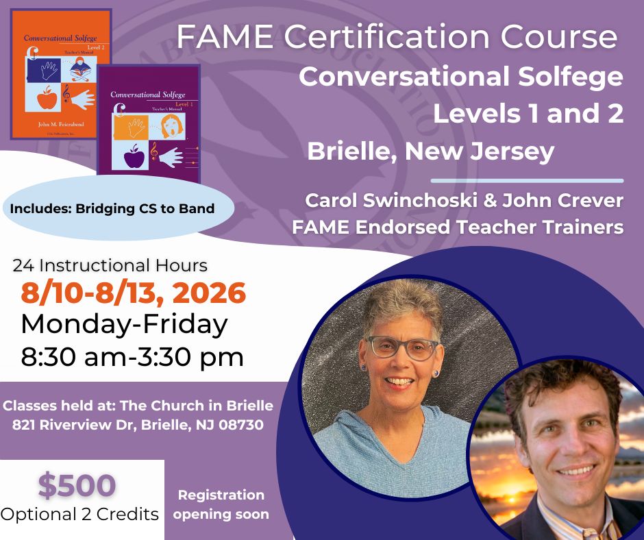 Wayne State University - SUMMER TERM 2026 Join educators from around the region for a three-day, in-person First Steps in Music® Certification at Wayne State University in Detroit. This immersive professional learning experience is designed for teachers who want to build strong, joyful musical foundations for young children through singing, movement, and play.Join educators from […]