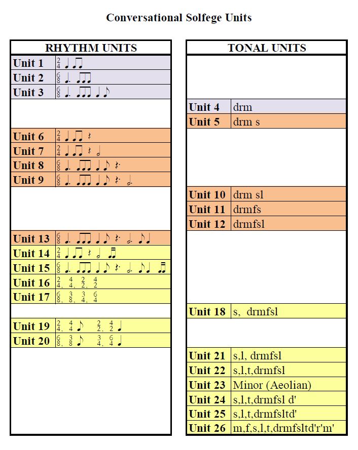 Past FAME Vice-President and Teacher Trainer Chris Anne Powers shares her new layout of the scope and sequence of CS over a several years period. John Feierabend shared this with his Conversational Solfege certification courses this summer and said that he “really likes Chris’s layout with the colors as it helps us remember that while working on rhythm skills in later units, to regularly review skills from tonal units. Click to get the chart