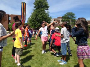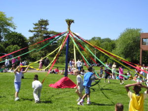 Everyone should have fun with May Day. It’s wonderful to watch the youngest students as they gaze in awe while older students dance intricate patterns and beautifully weave the May pole. It’s also delightful to observe how older students cheer on the younger students, remembering when they too were just learning some of the dances. And younger students are always excited when a new dance is introduced in class that they have seen an older grade perform at May Day. Since all the dances are age appropriate, the developmental sequence and layering of skills can easily be seen by all, again demonstrating the strength and importance of our sequenced curriculum.