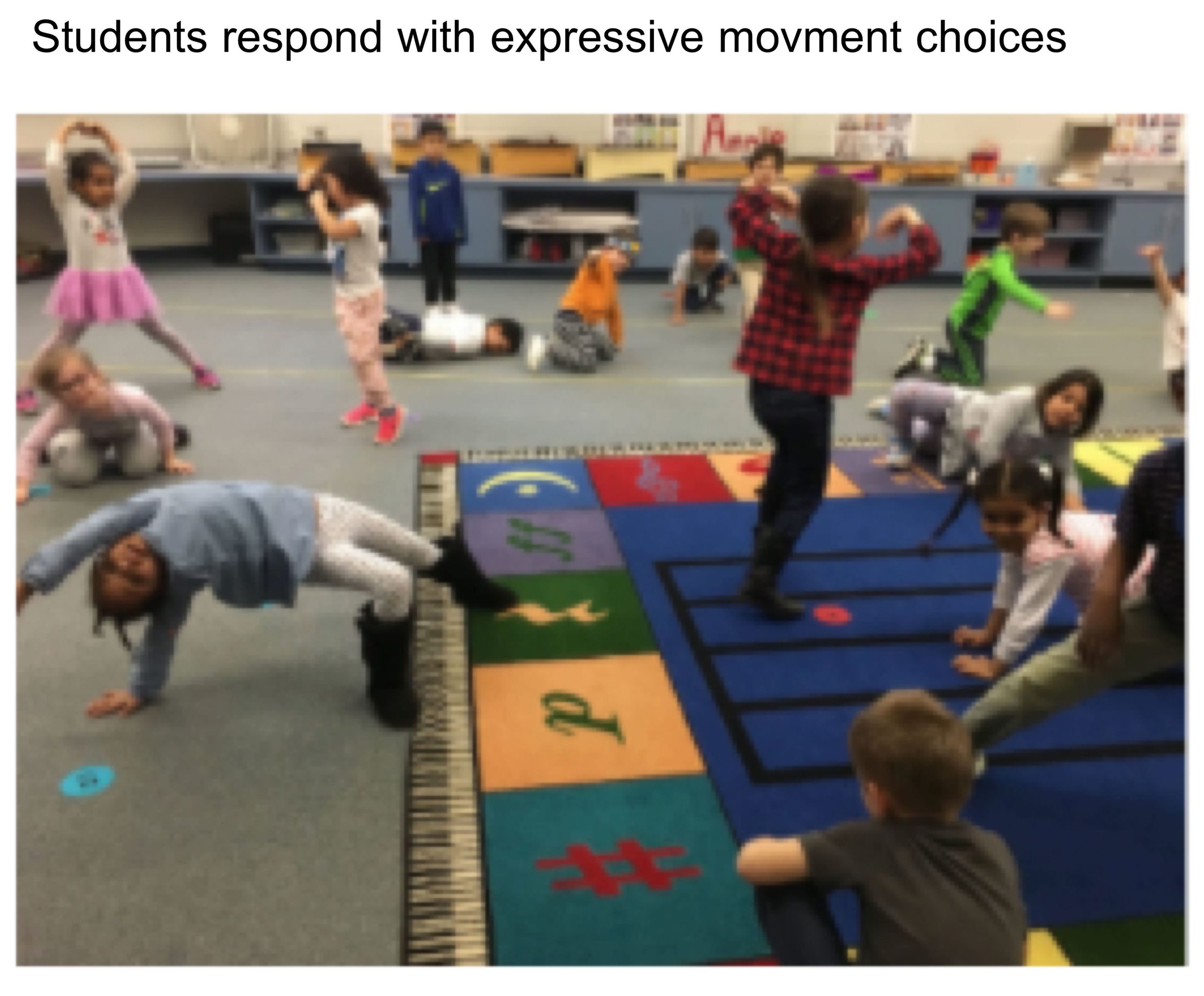 One of the aspects of the Feierabend approach that really drew me in was Jean Kahan’s wonderful movement exploration content. Incorporating the works of women and gender-expansive composers into my lessons, the movement exploration framework gave me a multitude of pathways to success. The focus on movement concept mastery before movement response to music was crucial for me. We practiced painting brushstrokes of varying lengths and intensity before pairing the movement with Errollyn Wallen’s “Concerto Grosso III”. Students practiced the skill of being human sculptors and sculptures long before we added music: Chen Yi’s “Flowing Stream” from a set of Chinese Folksongs. There are so many complex and dynamic music creations by women and gender-expansive composers that, really, the sky’s the limit when creating inclusive experiences in movement exploration.